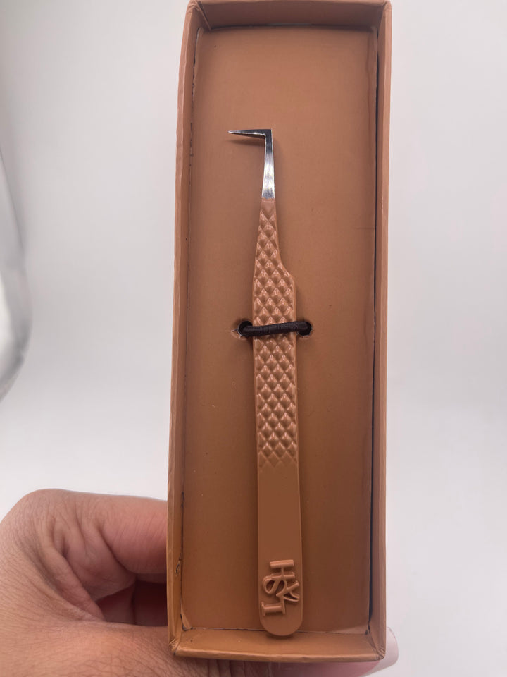 Our newest 90° precision tweezer — now in a dreamy nude chocolate finish! Perfect for volume & mega-volume lash artists who love clean fan pickup and perfect control.