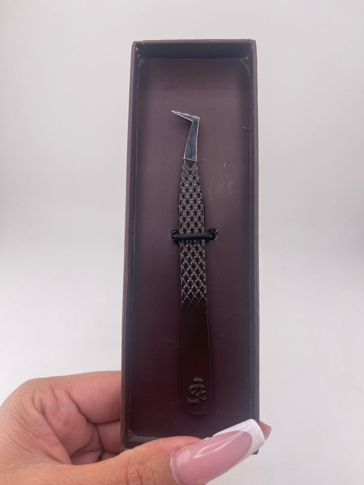 Shape: The sharp, clean bend lets you pick up fans from any direction while keeping your wrist relaxed — less strain during long lash sets 💪